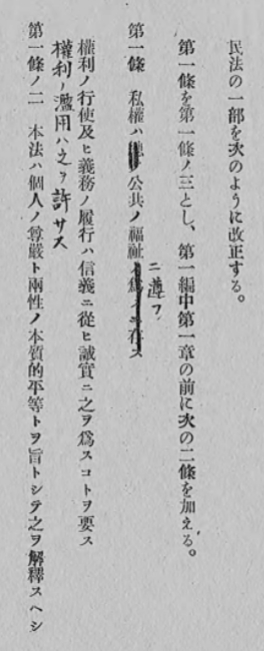 民法第一条の「私権ハ公共ノ福祉ニ遵フ」という条文だったのです。