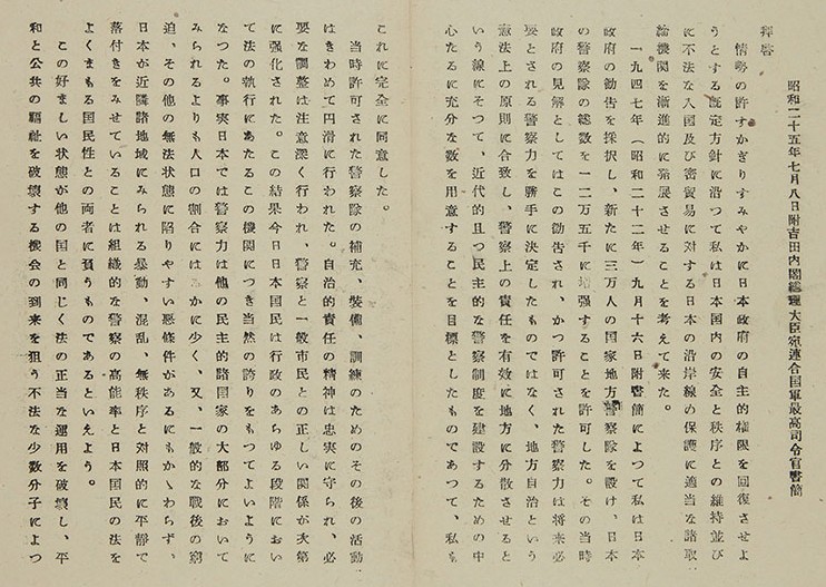昭和25年7月8日 ダグラス・マックアーサー