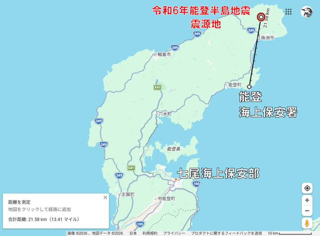 震源地からわずか21kmほどの所に能登海上保安署があり、ここにCL101おぎかぜが配備されていました。