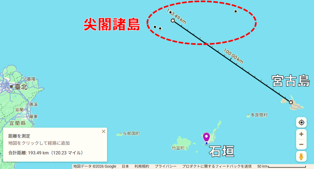 宮古島海上保安部から尖閣諸島周辺までは約190kmの距離。