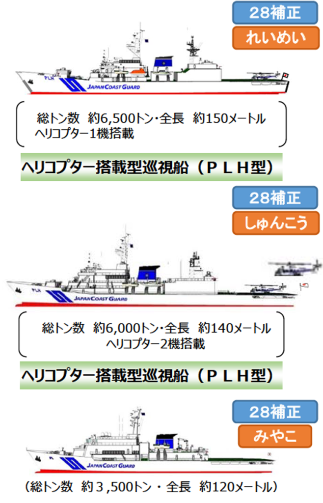 沖縄本島にはヘリ1機搭載型の大型巡視船3隻が従来から配備されていました。