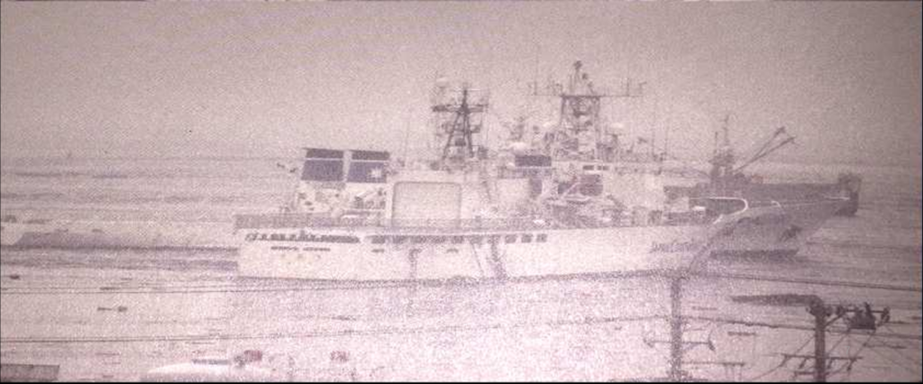 真ん中:巡視船くりこま(煙突二本)